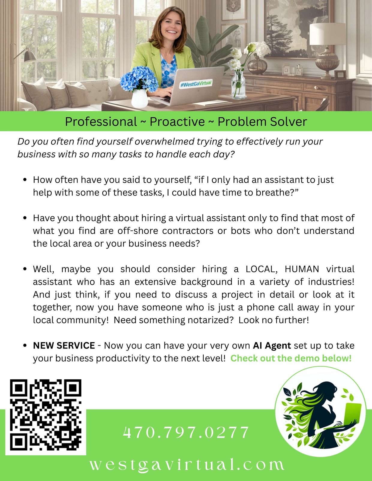 In this age of Artificial Intelligence (AI,) it is important to work with a professional who knows the benefits as well as the limitations of such technology yet is nearby & just a phone call away to provide a PERSONAL touch to help streamline your processes and even exceed your business goals!